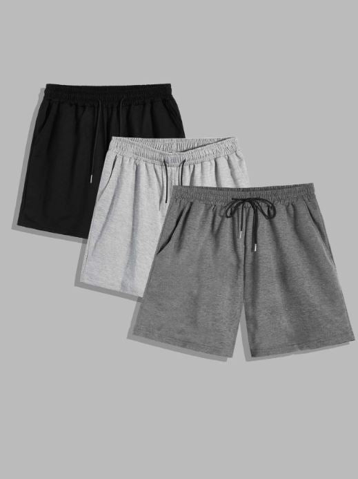 MEN 3PCS SOLID HIDDEN POCKET DRAWSTRING SHORTS